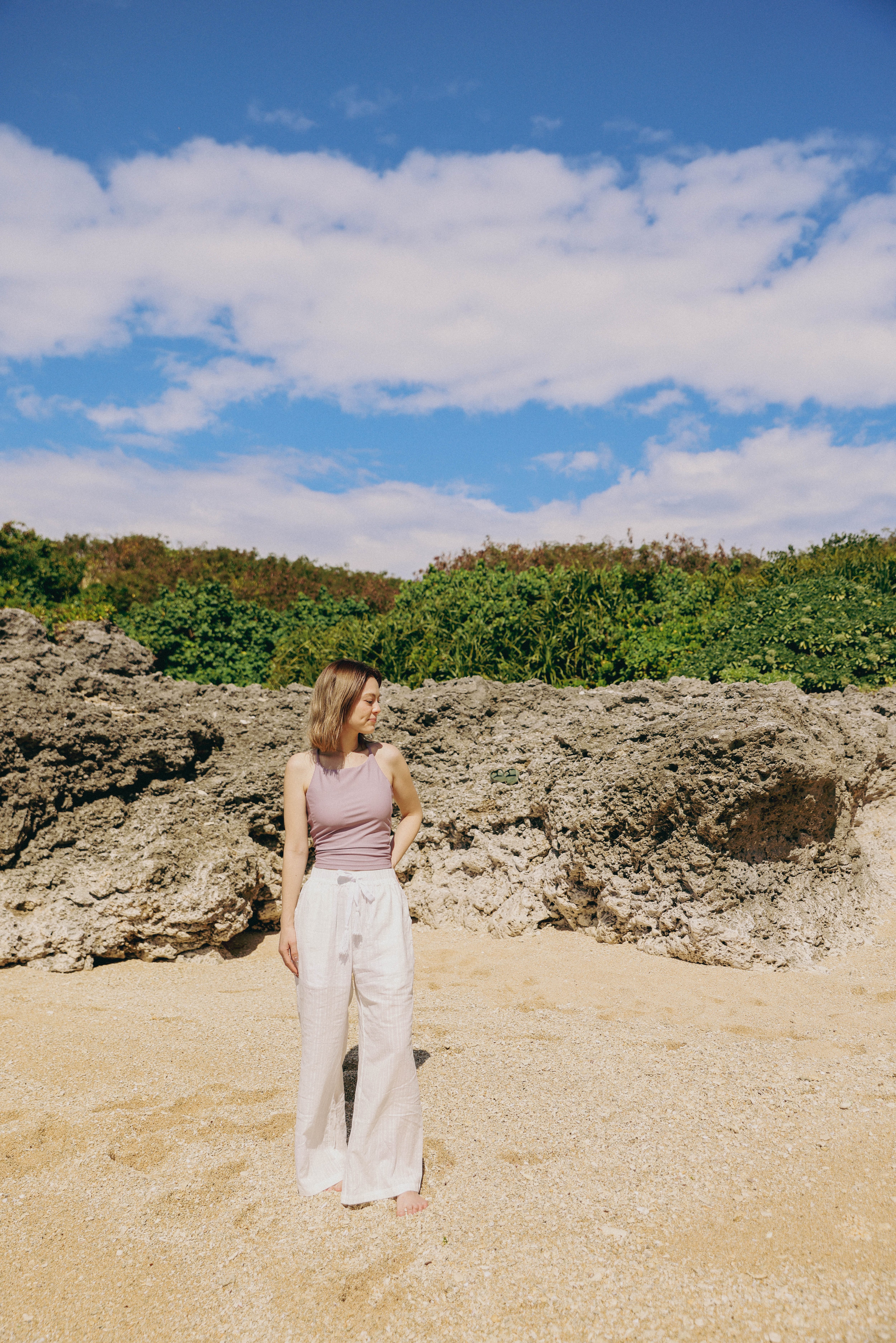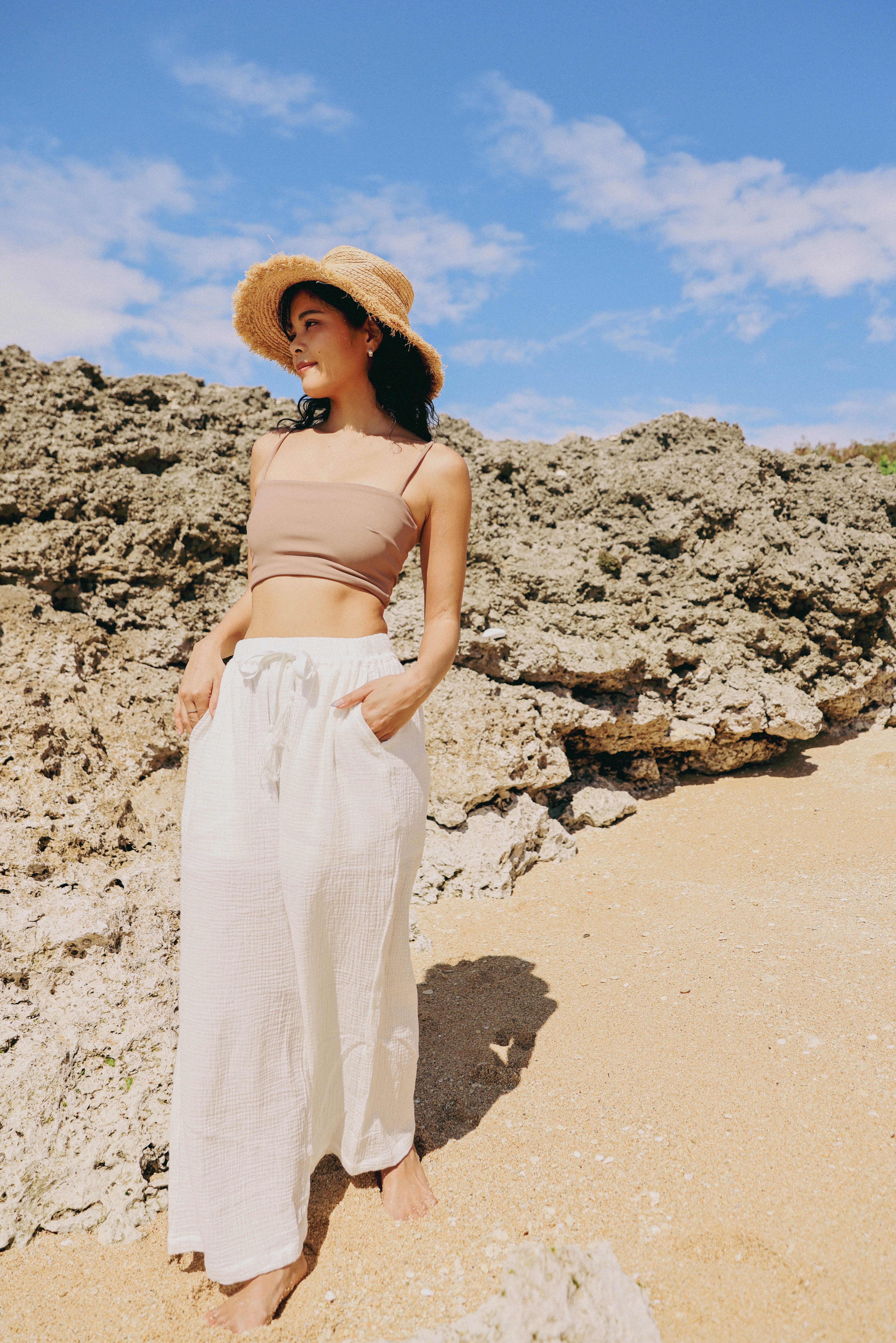 薄くて柔らかいコットン生地のリラックスワイドパンツ