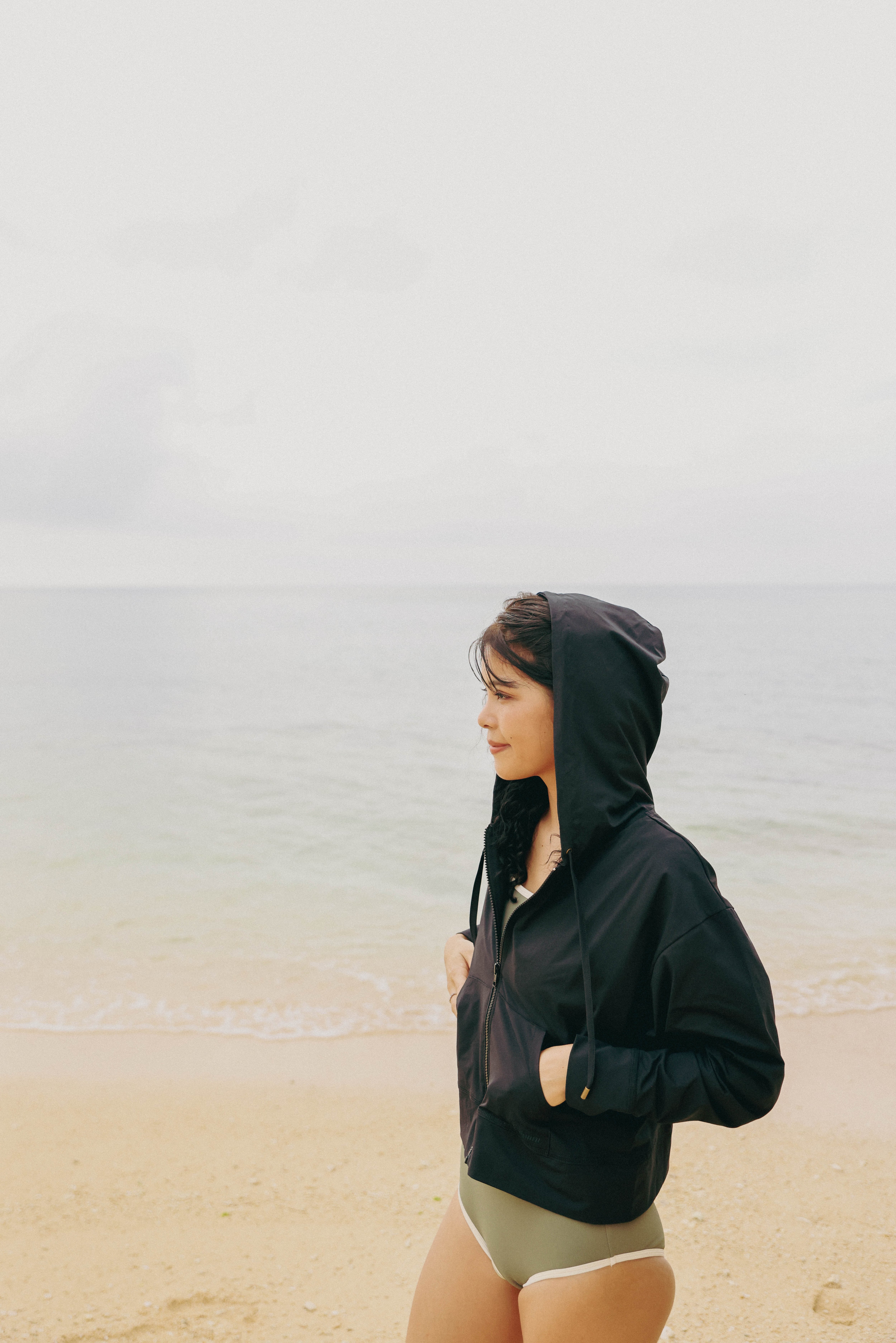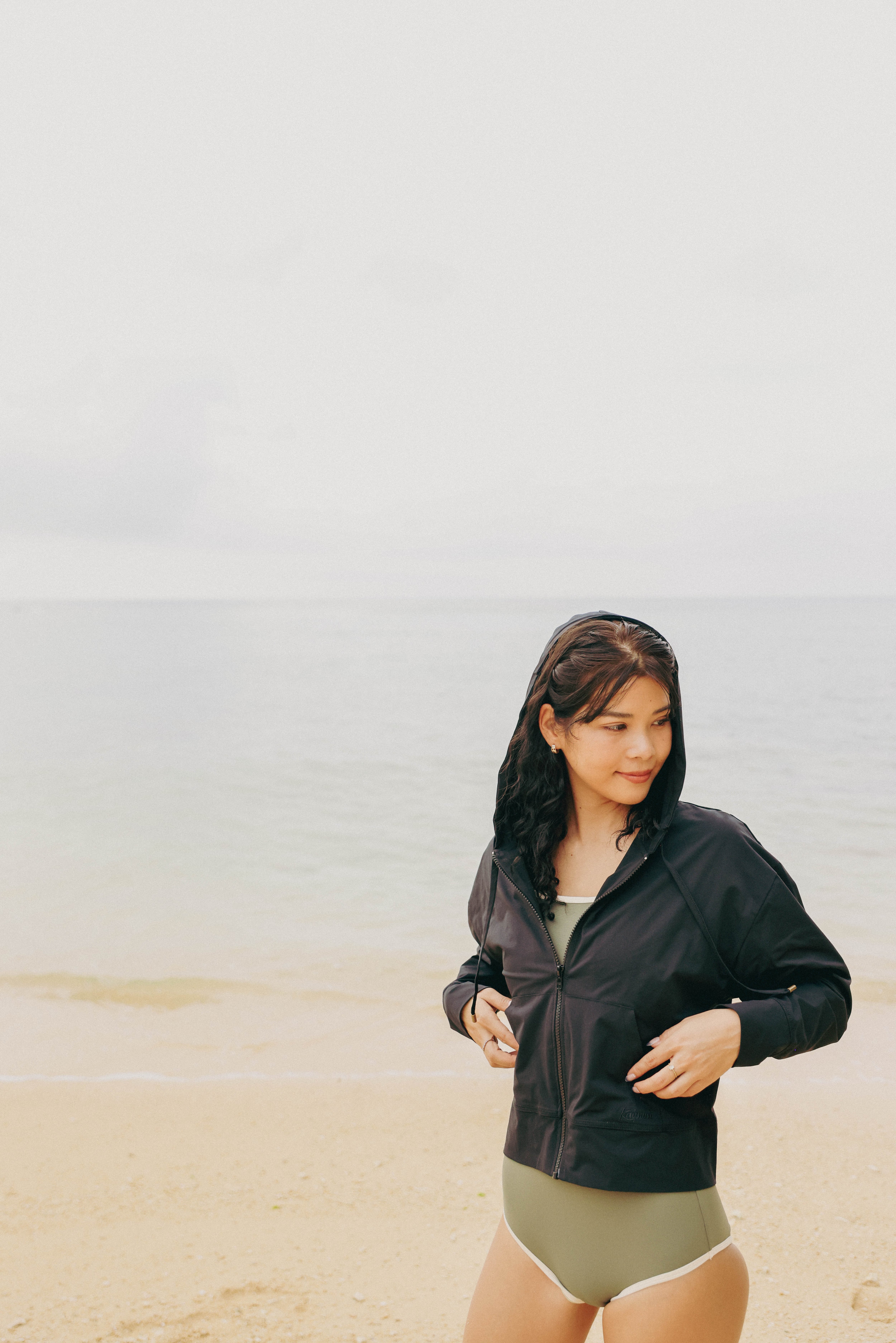 ショート丈のシンプルなパーカーラッシュガード