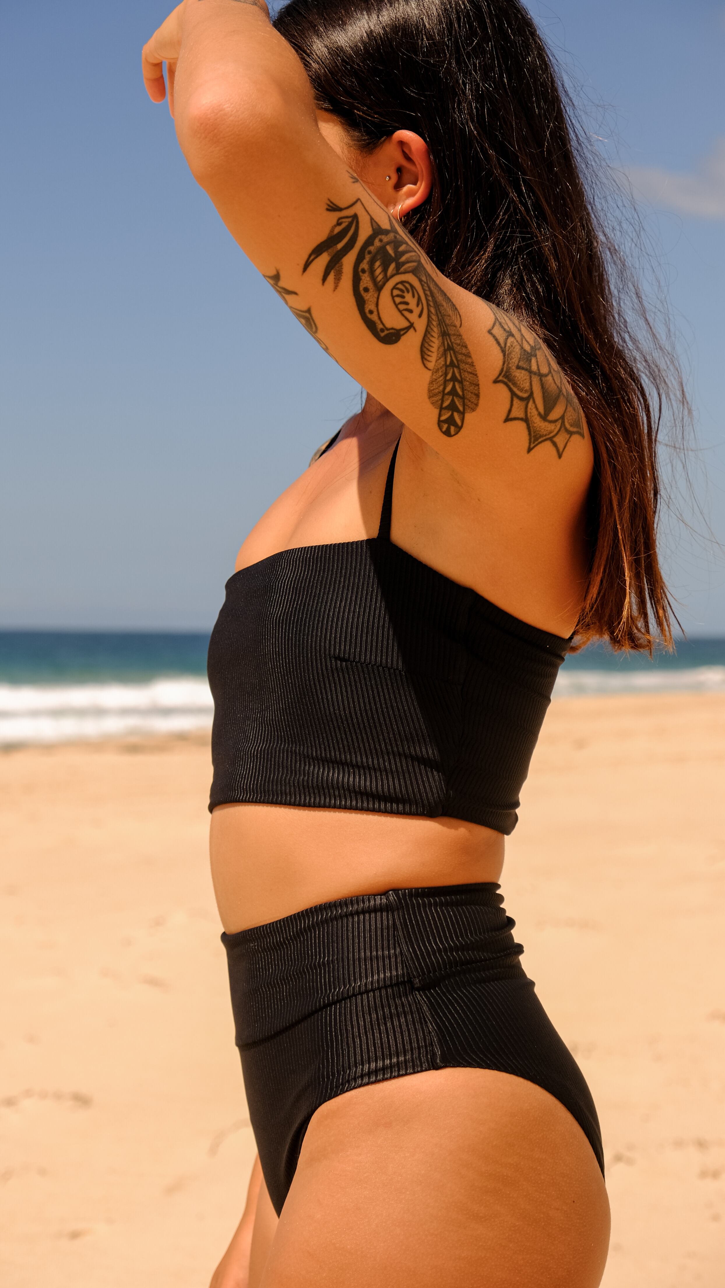⋆ボトムはハイウエストで海の中でもお腹が冷えにくく、アクティブな動きでもずれにくく安心感あります。